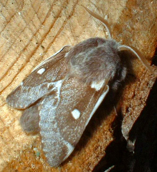 Die Falter des Wollafters fliegen früh im Jahr. Sie schlüpfen an sonnigen Tagen meist bereits im März. Die Falter sind rot-braun und dicht behaart (Abb. 3). Kennzeichen sind ein weißer Punkt in der Flügelmitte und ein weißer Fleck an der Flügelbasis, der beim Männchen größer ausgebildet ist.