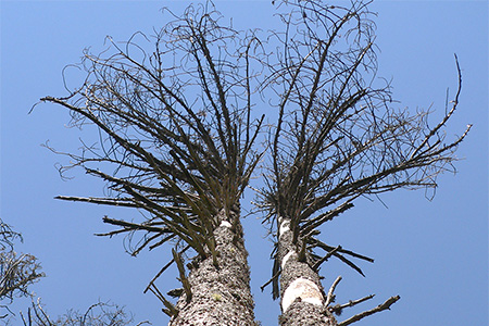 Abb. 2 - Borkenkäferfallen dienen hauptsächlich der Überwachung. Die Käferpopulationen lassen sich damit nicht erheblich reduzieren. Foto: Ulrich Wasem (WSL)