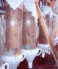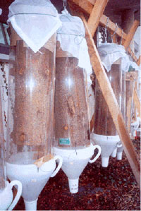 Um diese Frage zu klären wurde eine unter Insektenkundlern gebräuchliche Methode verwendet: Vom Buchdrucker besiedelte Stammstücke (Länge 1 m, Durchmesser 30 cm) wurden in verschiedenen Beständen zur Besiedlung durch Schlupfwespen ausgelegt. Entscheidend ist, dass vom Borkenkäfer besiedeltes Holz eine Lockwirkung auf die Zielinsekten ausübt. Nach ausreichender Expositionszeit werden alle aus diesen Stammstücken schlüpfenden Tiere in extra für diesen Zweck entwickelten Auffangbehältern (so genannte Stammeklektoren) aufgefangen und nach ihrer Artzugehörigkeit bestimmt. Abbildung 1 zeigt eine Reihe dieser Auffangbehälter.