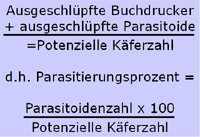 Die Bedeutung der einzelnen Parasitoidenarten als Borkenkäferfeinde ist von biologischen und populationsdynamischen Faktoren bestimmt. Als Kennzeichen für ihren Einfluss dient das Parasitierungsprozent. Es wurde wie folgt berechnet: