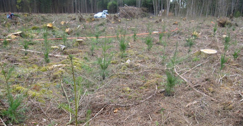 - Schutzkrägen und ein Schutz der Stämmchen mit stammumgebenden Mitteln (z. B. Ekowachs) haben in Versuchen der LWF keine ausreichende Wirkung gezeigt. Abzuraten ist auch von einer Entfernung der Stubben oder großflächigem Mulchen. Von einer flächigen Befahrung raten wir grundsätzlich ab – nicht nur auf empfindlichen Böden.