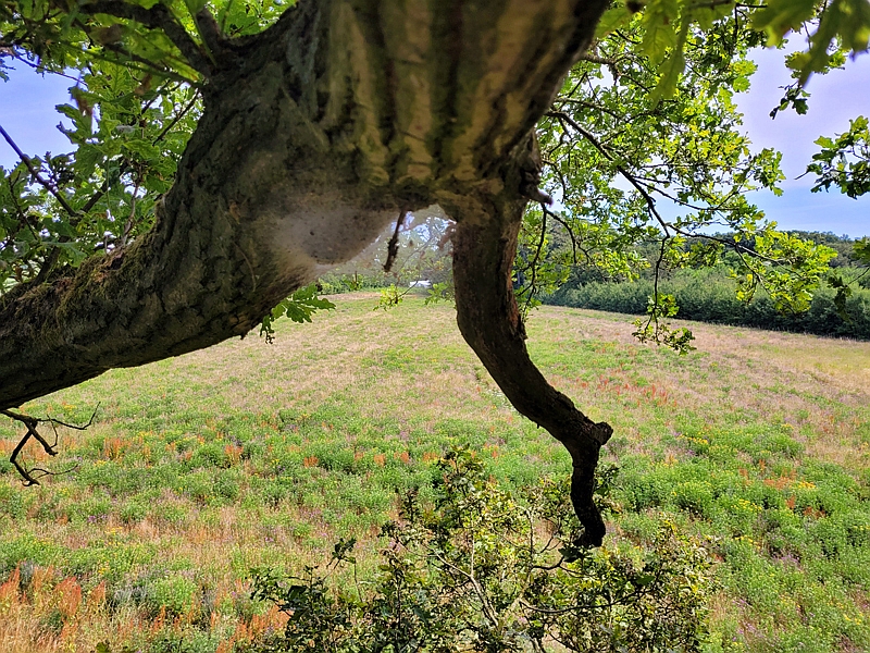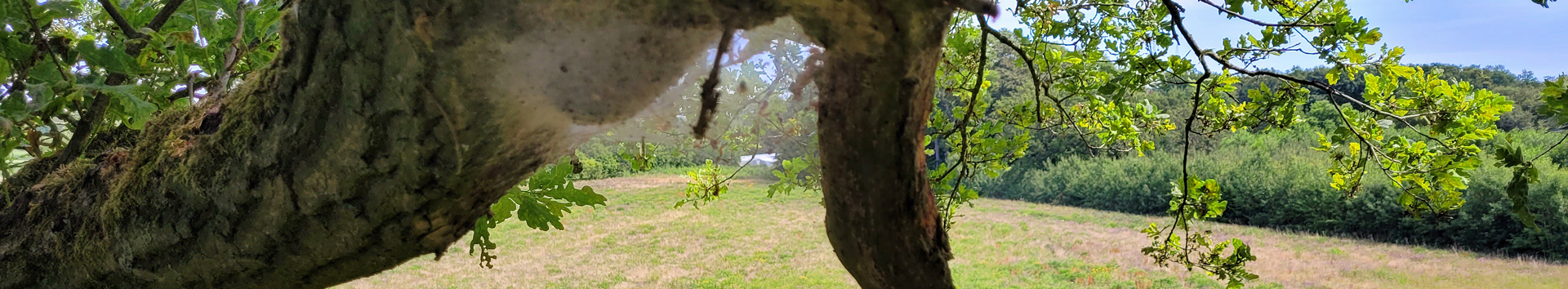 Der Eichenprozessionsspinner (EPS), Thaumetopoea processionea, ist seit etwa 2014 zu einem der prominentesten Eichenschädlinge in NRW aufgestiegen, da er sich in den vergangenen Jahren schnell von Westen nach Osten hin ausgebreitet hat (siehe Infomeldung 4/2022). Als wärmeliebende Art ist er häufig an Waldrändern, Straßenbäumen und Stadtgrün anzutreffen und kommt dadurch oftmals an Orten mit viel Publikumsverkehr vor. Die Raupen und Nester stellen ein Gesundheitsrisiko dar, da die Brennhaare zu starkem Hautausschlag führen können. Eine Bekämpfung ist deshalb in vielen Bereichen unausweichlich.