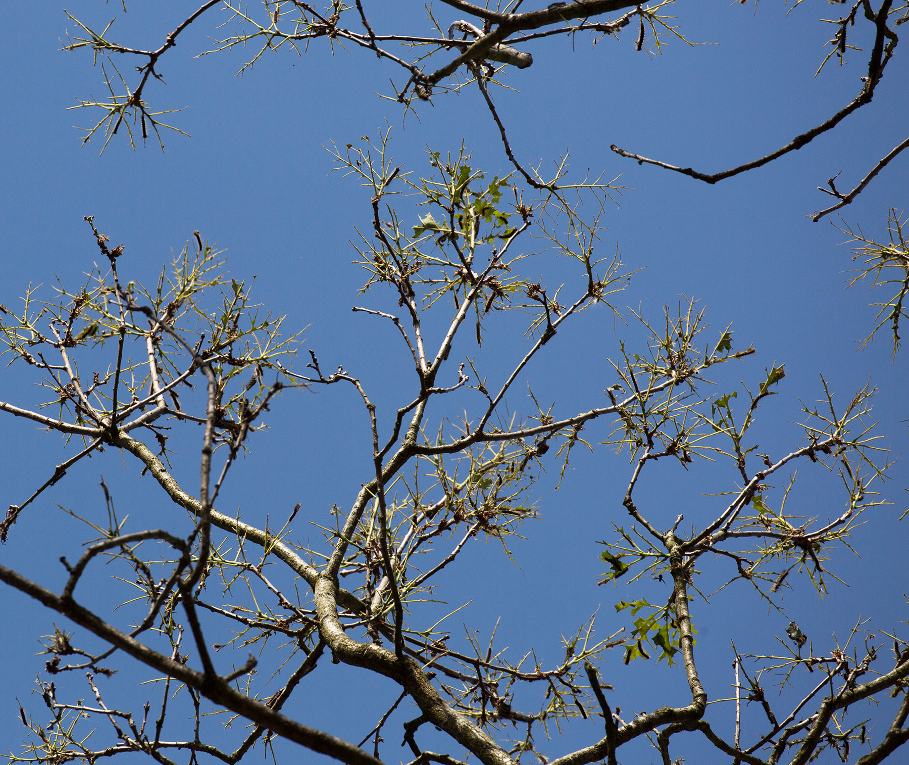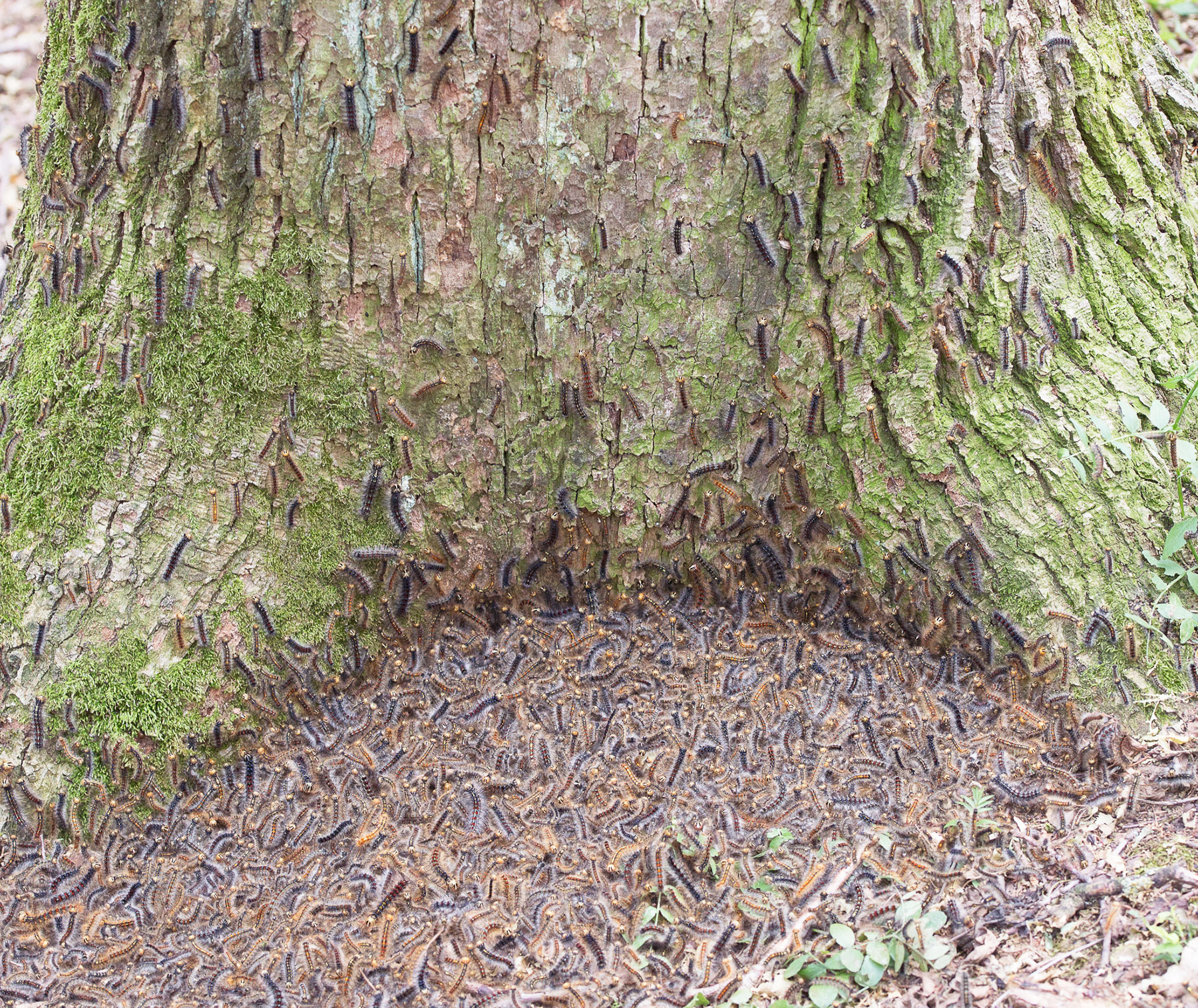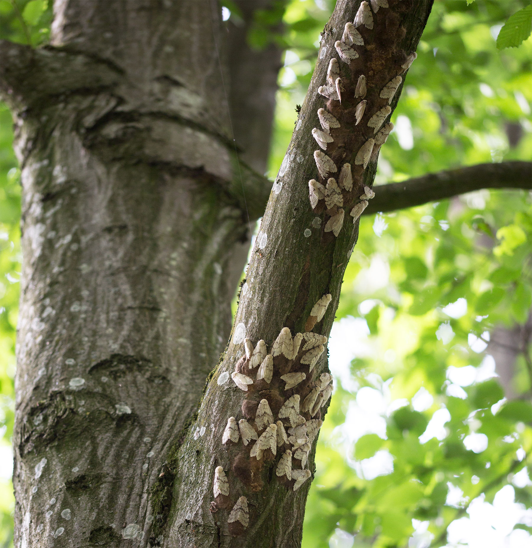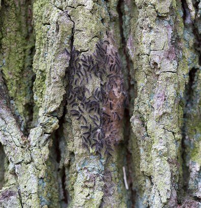 Ihr Fraß bleibt aber nicht ohne Folgen: Mehrmaliger Kahlfraß in Verbindung mit Trockenereignissen, Mehltau-Befall oder dem Fraß weiterer Schmetterlingsraupen kann zum Absterben von Eichen führen. Die Eiche ist durch die extrem warmen und trockenen Jahre seit 2015 geschwächt und kann diesen zusätzlichen Stressfaktoren daher weniger entgegenhalten als sonst. Kommt jetzt neben der mehrjährigen Trockenheit massiver Schädlingsfraß hinzu, kann das für viele Eichen das Ende bedeuten.