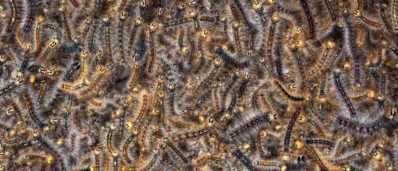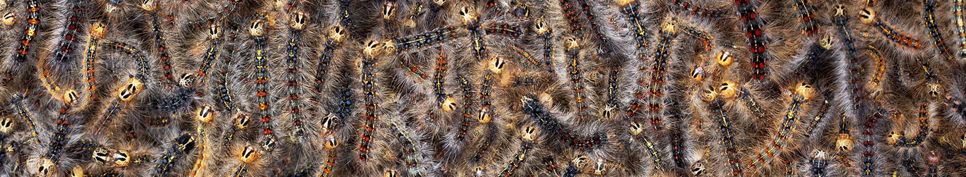 Abb. 8: Jede Schwammspinnerraupe vertilgt in der 6 – 14 Wochen dauernden Entwicklungsphase etwa 1 m² Laub (Foto: H. Lemme, LWF).