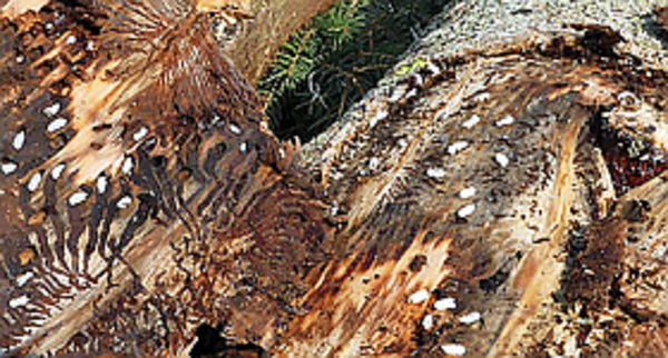 Abb. 1: Horrorbild für Waldbesitzende - Buchdrucker-Vermehrung unter Fichtenrinde. Foto: S. Befeld
