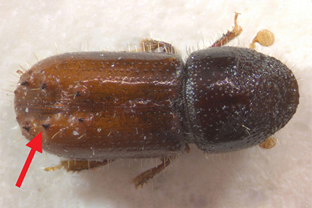 - Zusätzliches Befallssymptom in der Vegetationsperiode ist das Vorhandensein von braunem Bohrmehl = frischer Befall!