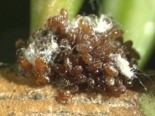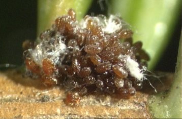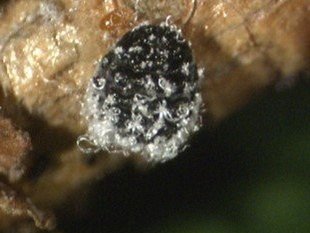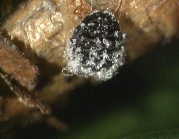 Abb. 3 & 4: Eigelege und Mutterlaus der Tannentrieblaus. Foto: Bernhard Perny/ BFW