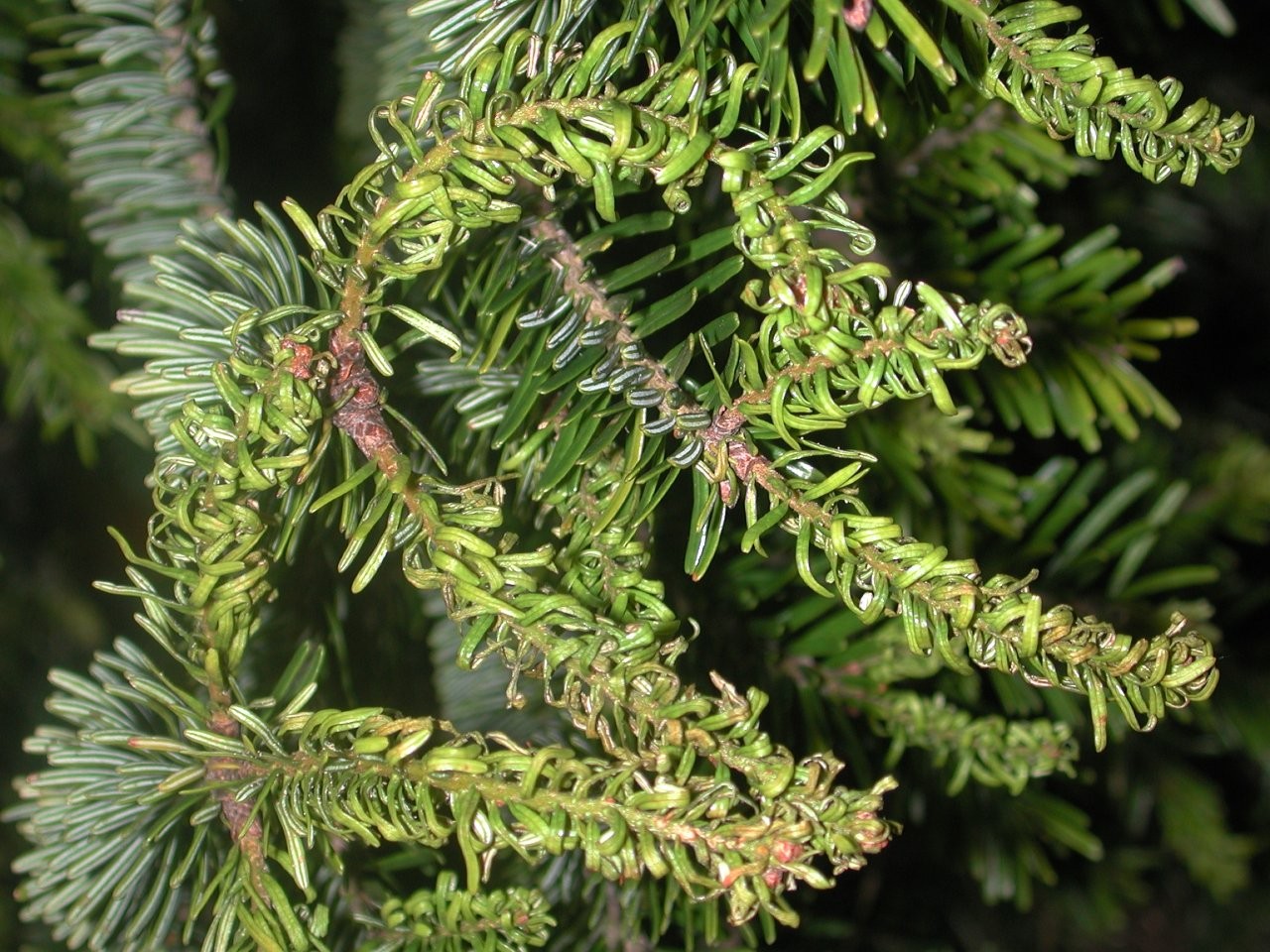 Abb. 1: Typische Verkrümmungen der Nadeln durch Befall der Tannentrieblaus.