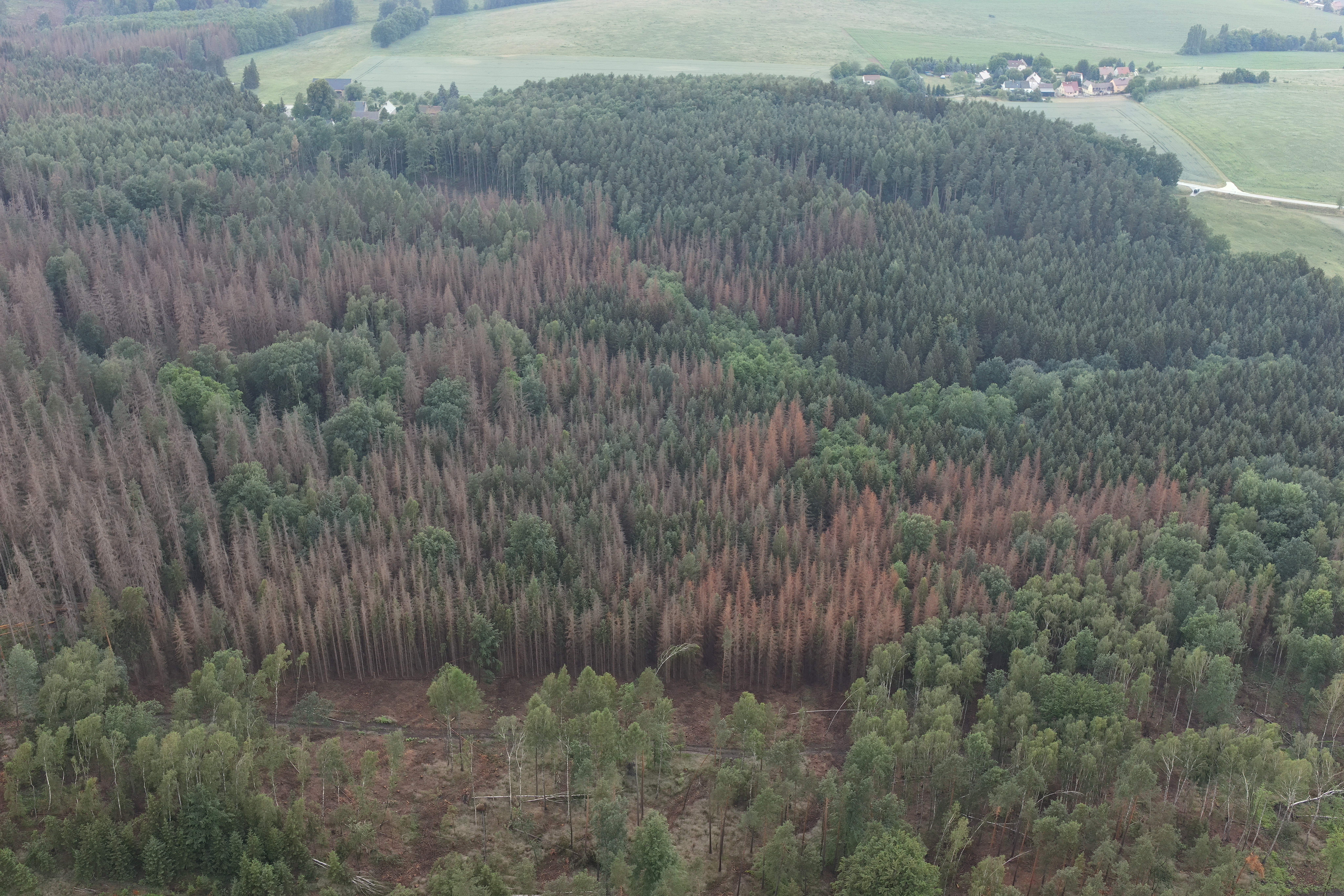 Der Buchdrucker (Ips typographus) als einer der bedeutendsten biotischen Schadfaktoren in Fichtenwäldern Mitteleuropas profitiert als multivoltine Art in besonderem Maße von steigenden Temperaturen. Die zunehmende sommerliche Trockenheit erhöht gleichzeitig die Prädisposition seiner Wirtsbaumart, der Fichte (Picea abies). Mit einem Flächenanteil von mehr als 34 % ist sie die häufigste Baumart im sächsischen Wald. Daher sind wirksame Maßnahmen zur Verhinderung von Stehendbefall besonders wichtig.