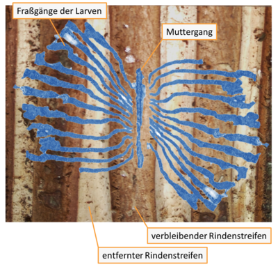 Ausschlaggebend für die Wirksamkeit gegen Fichtenborkenkäfer ist beim Streifen mit dem Motorsägenanbaugerät ein komplettes Durchtrennen der Rinde bis auf den Holzkörper. Bei stärkeren Holzdimensionen mit dicker Rinde können dazu mehrere Bearbeitungsgänge nötig werden. Zudem müssen die Stämme während der Entrindung mehrmals gedreht werden, damit alle Rindenbereiche am Stamm gefräst werden können.