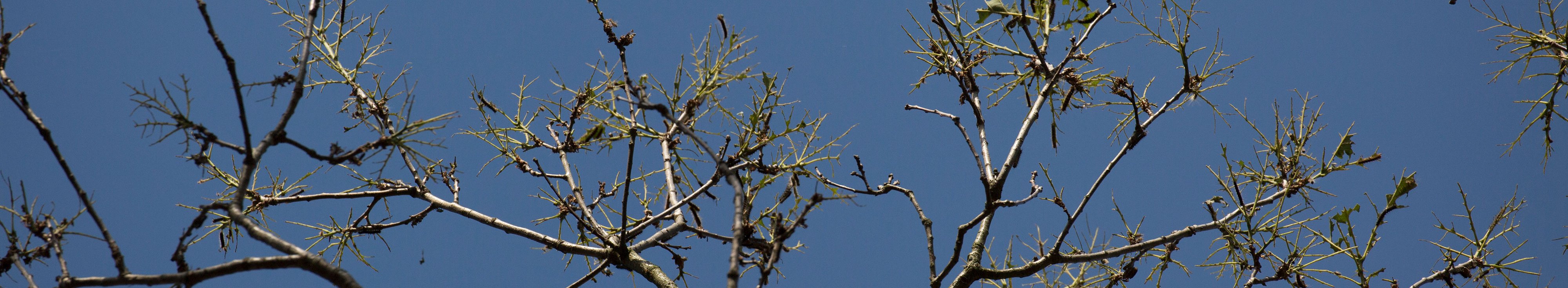 Ab dem Jahr 2010 wurde ein einzelbaum- bis gruppenweises Absterben großkroniger, optisch vitaler Eichen beobachtet. Die Eichen trieben gar nicht oder sehr langsam und zeitverzögert aus. Das deutete auf eine bestehende Vitalitätsschwächung hin. Daher war es notwendig, 3.000 Hektar Waldflächen besonders geschädigter Eichenbestände mit Pflanzenschutzmitteln zu behandeln.