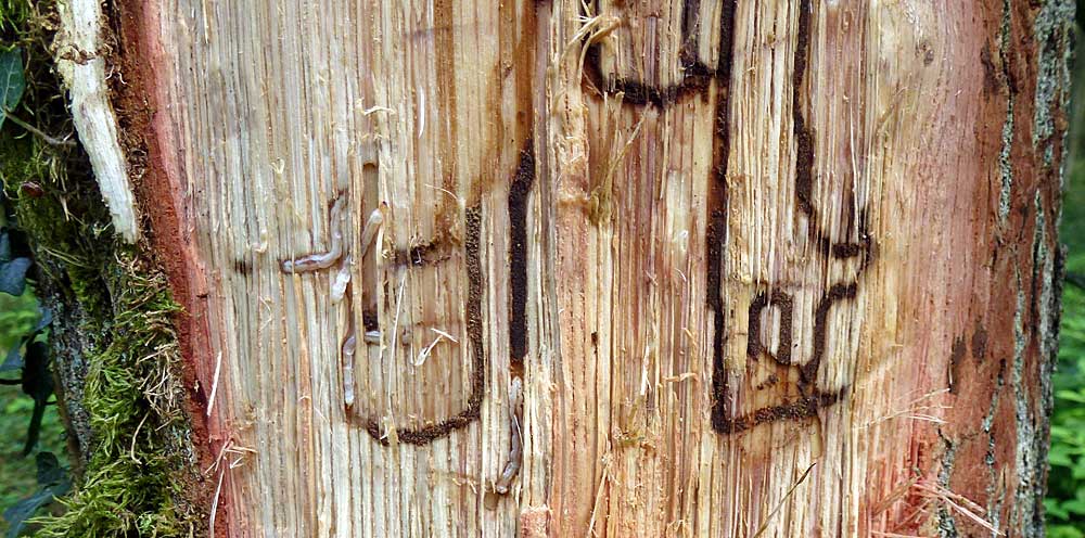 Der in der Rinde brütende Eichenprachtkäfer (EPK) profitiert nach Kahlfraß und Mehltaubefall als Folgeschädling wesentlich von der akuten physiologischen Schwächung und verminderten Vitalität der betroffenen Eichen. So sind die Abwehrreaktionen in Form von Schleimfluss oder gesteigertem Kambialwachstum unmittelbar nach Kahlfraßereignissen an den Eichen nur noch in reduziertem Umfang festzustellen. Durch die ungehinderte Fraßtätigkeit der Larven des EPK bleibt die Regeneration an diesen Bäumen aus.
