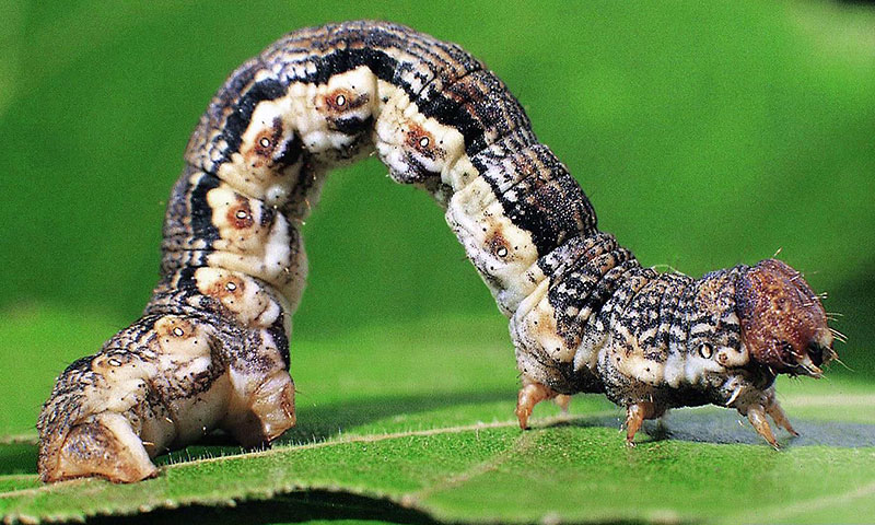 Abb. 2: Eine Raupe des Großen Frostspanners; sie wird bis zu 35 Millimeter lang und ist nur im Mai und Juni zu finden (Foto: G. Csoka, Hungary Forest Research Institut, Bugwood.org).