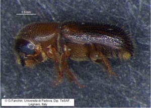 Der Borkenkäfer Pityophthorus juglandis transportiert den Pilz