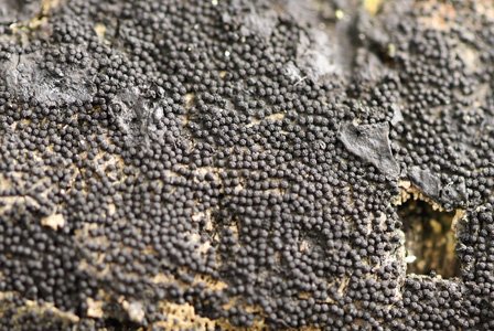 Die Bildung der asexuellen Sporen (Konidien) erfolgt im Sommer. Diese sind tonnenförmig, messen etwa 20–35 x 10–15 μm und sitzen auf bis zu 70 μm langen Konidienträgern. Die sexuellen Fruchtkörper (Chasmothecien) werden von Sommer bis Herbst produziert. Sie sind schwarz und kugelförmig, und haben einen Durchmesser von 75 bis 120 μm. Ihre 9 bis 22 unverzweigten Anhängsel sind 70 bis 130 μm lang und haben typischerweise eine spiralförmig eingebogene Spitze (Abb. 2). Die Chasmothecien enthalten 2 bis 5 eiförmige Asci, mit je 4 bis 8 ellipsoiden Ascosporen (15–20 x 7–10 μm) in ihrem Innern.