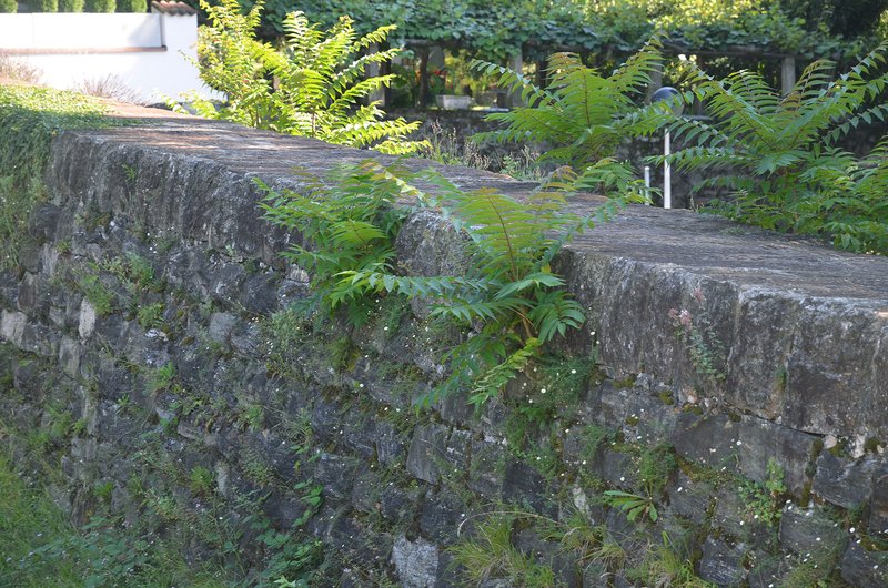 Abb. 6. Junge Götterbäume auf einer Bachverbauung im Siedlungsgebiet von Bellinzona (TI). Foto: Rita Conedera