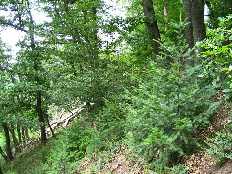 Abb. 1: Douglasien-Naturverjüngung in einem Hainsimsen-Traubeneichenwald (Luzulo-Quercetum) am Hirzberg bei Freiburg (Foto: A. Reif).