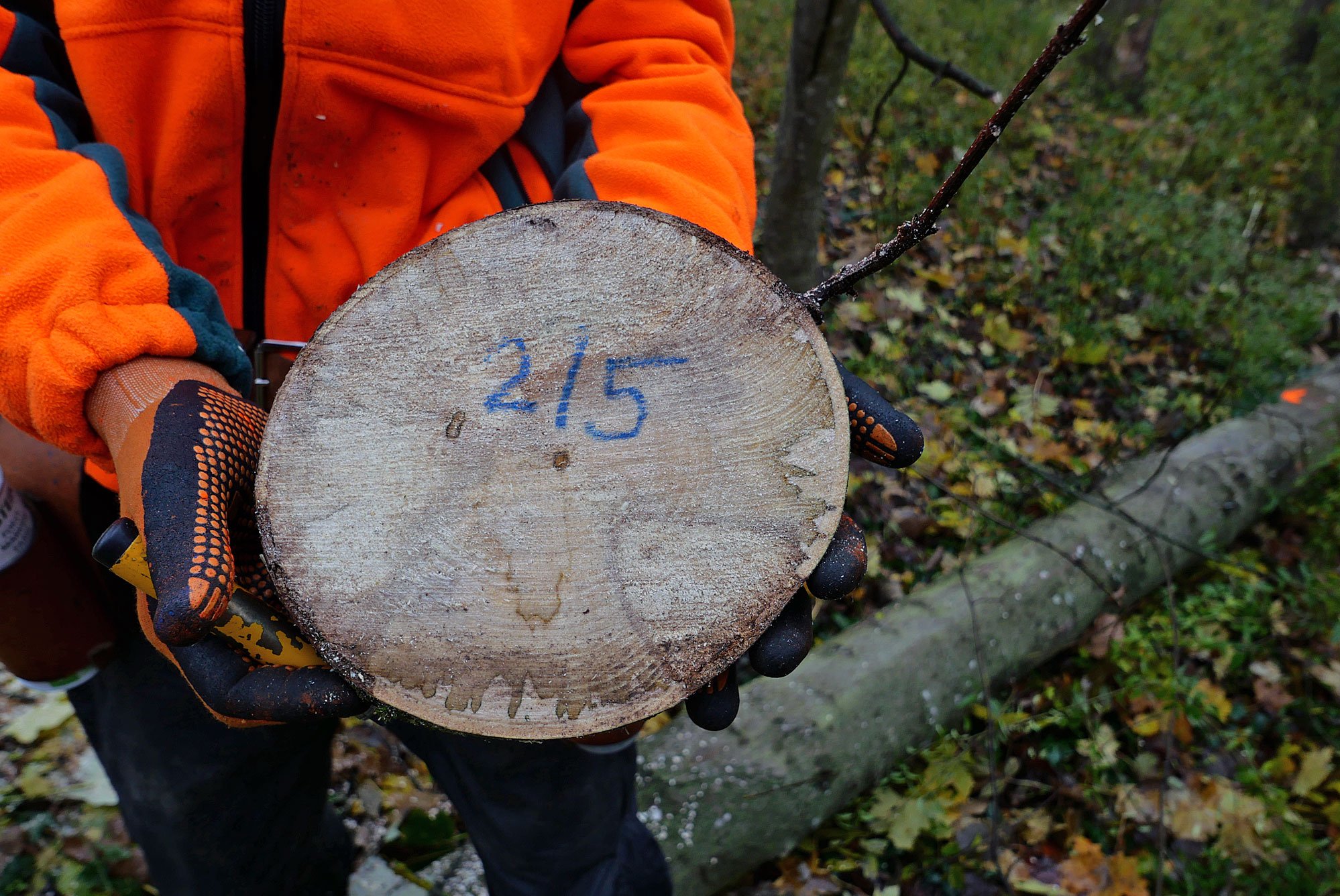 - Während den Fällarbeiten unbedingt FFP3-Atemschutzmasken, Schutzbrillen, Handschuhe, geschlossene, leicht zu reinigende Schuhe und Einweg-Schutzanzüge als Schutz vor den Sporen tragen.