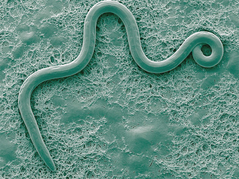 Abb. 1 - Der Kiefernholznematode, ein ca. 1 mm langer Fadenwurm. Foto: Beat Frey (WSL)