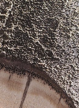 Abb. 7a: Russrindenkrankheit (Cryptostroma corticale) an Ahorn. Ältere Sporenschicht, bereits teilweise abgetragen. Die pulvrige Konsistenz