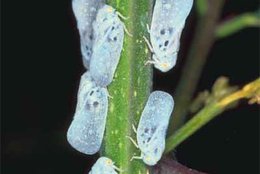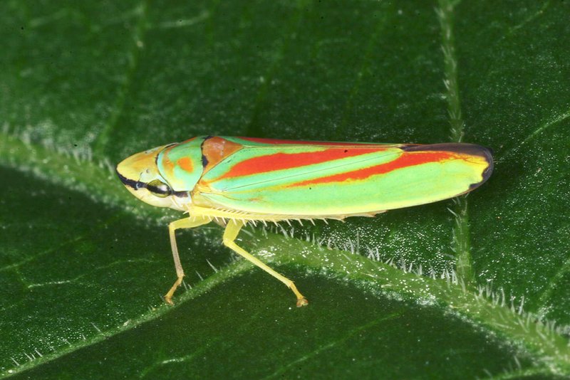 Abb. 1 - Die Rhododendronzikade (Graphocephala fennahi) ist schon seit 40 Jahren in der Schweiz. Rhododendron ist die einzige Wirtspflanze für die Larven. Die adulten Tiere sind jedoch auch auf Efeu, Linde, Platane, Ahorn oder Hasel zu finden. Foto: Beat Wermelinger (WSL)