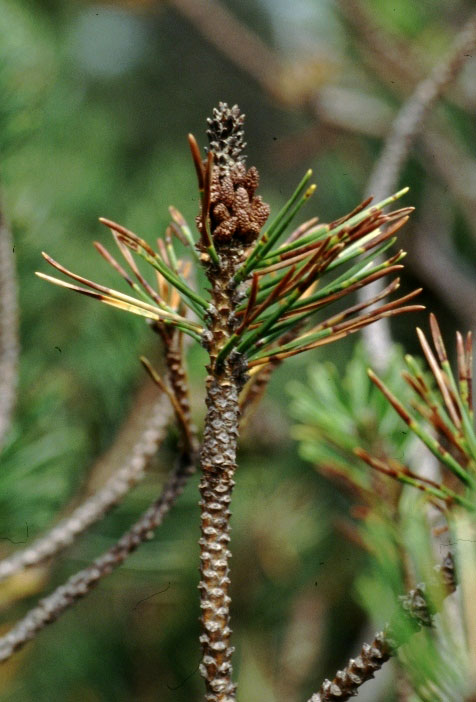 Gefährdet: Kiefern. 1995 erstmals in Bayern entdeckt, seitdem 12 Meldungen.
