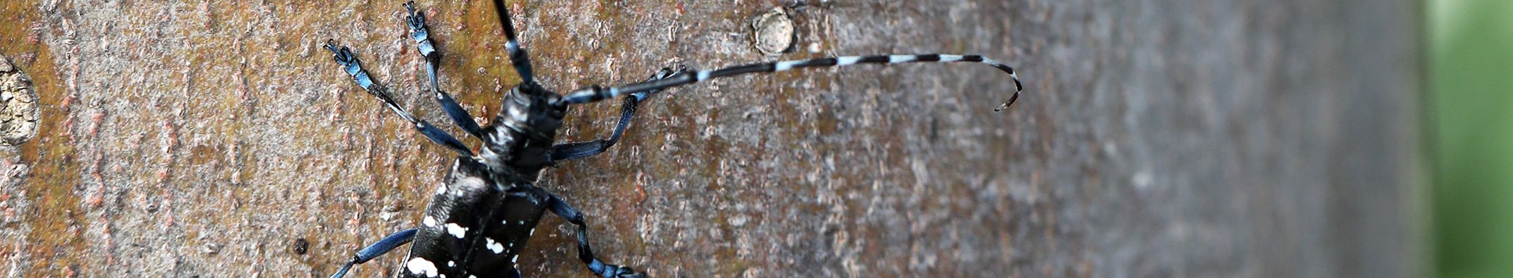 - der Citrus-Bockkäfer (CLB, Anoplophora chinensis) und der Asiatischer Laubholzbock (ALB, Anoplophora glabripennis)