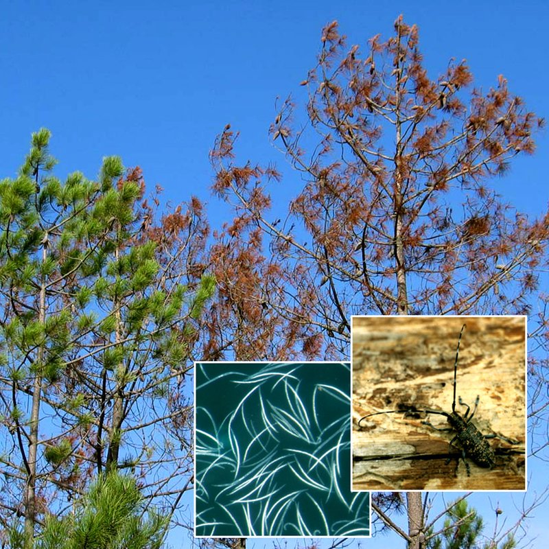 - und der Kiefernholznematode (Bursaphelenchus xylophilus), der Quarantäneschädling, der mittelfristig das größte Risiko für die heimischen Wälder darstellt.