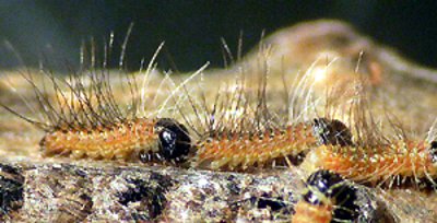Abb. 1: Junglarven des Eichenprozessionsspinners. Gegen Larven des 1. und 2. Stadiums dieses Falters werden Bt-Präparate erfolgreich eingesetzt.
