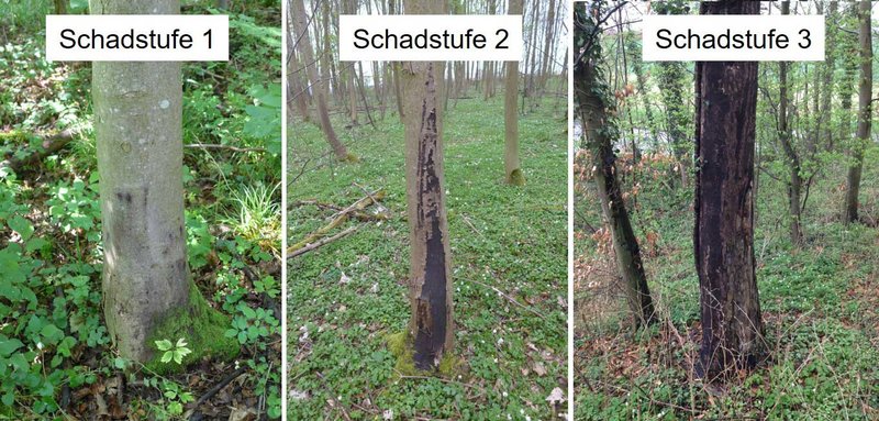 Abb. 8: Die in den betroffenen Beständen anzutreffenden unterschiedlichen Schadstufen im Überblick.