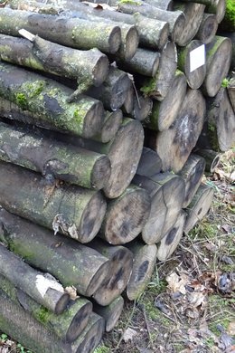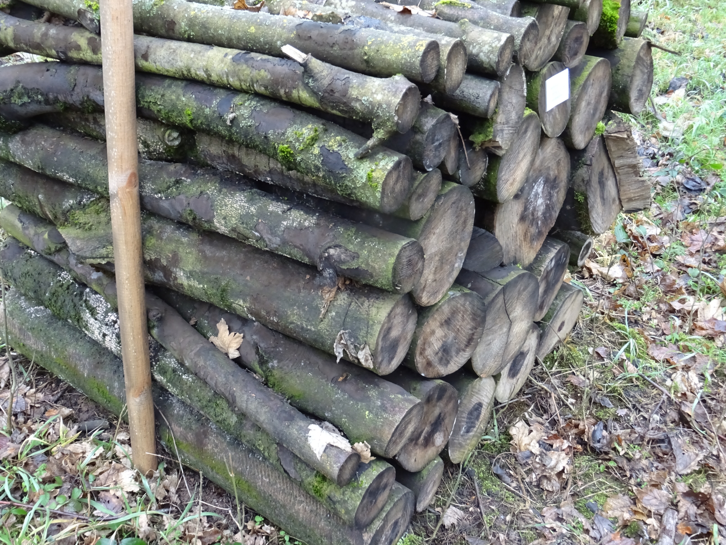 Von den 34 Beständen wurden 15 zur dauerhaften Beobachtung ausgewählt. In diesen Flächen wurde je ein Holzpolter mit Ahorn-Rundlingen angelegt (Abbildung 2c). Diese Polter wurden mindestens halbjährlich auf die Bildung von Sporenlagern untersucht.