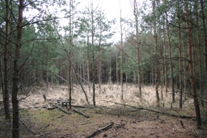 "Sterbelücke" durch Wurzelschwamm in einem Kiefernbestand.