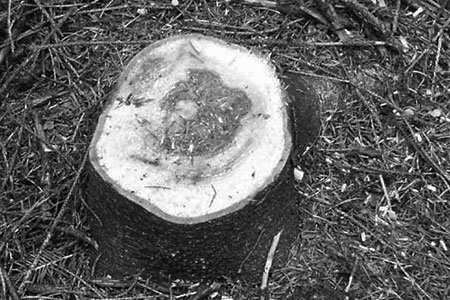 Schon seit einigen Jahren verursacht der Wurzelschwamm (Heterobasidion annosum [Fr] BREF.) in Kiefernerstaufforstungen der Lausitzer Bergbaufolgelandschaft erheblichen Schaden. Als Vorbeugungsmaßnahme dient die vollmechanisierte Behandlung der frischen Durchforstungsstubben. Dabei wird eine Myzelsuspension des autochthonen Riesenrindenpilzes (Phlebiopsis gigantea) [Fr.] JÜLICH, während des Fällschnittes durch den Harvester appliziert. Der Konkurrenzpilz siedelt sich am Stubben an und verhindert somit das Auftreten des Wurzelschwammerregers. Diese vom Landesbetrieb Forst Brandenburg hergestellte Suspension ist zwar effektiv, jedoch nicht patentiert bzw. als Pflanzenschutzmittel für den Handel zugelassen. So werden nach wie vor bereits etablierte Sporenpräparate für die präventive Stubbenbehandlung genutzt.