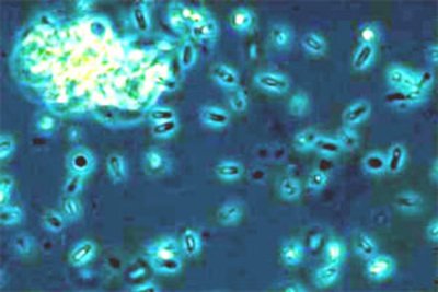 Abb. 4: Stäbchen-förmige, einzellige Konidien (3-5 x 1,2 μm).