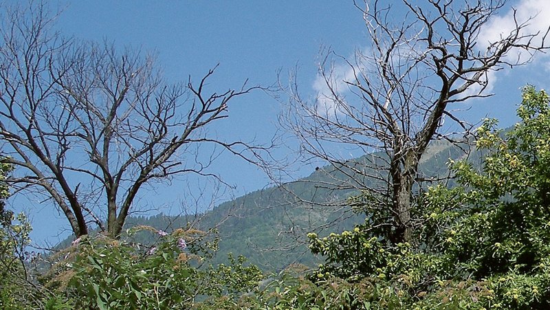 Abb. 1. Vom Kastanienrindenkrebs befallene Edelkastanien bei Collonges VS. Ein Grossteil der Baumkronen ist nach langjährigem Befall abgestorben. Foto: Phytopathologie WSL