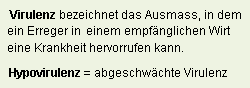 Virulenz bezeichnet das Ausmass, in dem ein Erreger in einem empfänglichen Wirt eine Krankheit hervorrufen kann.