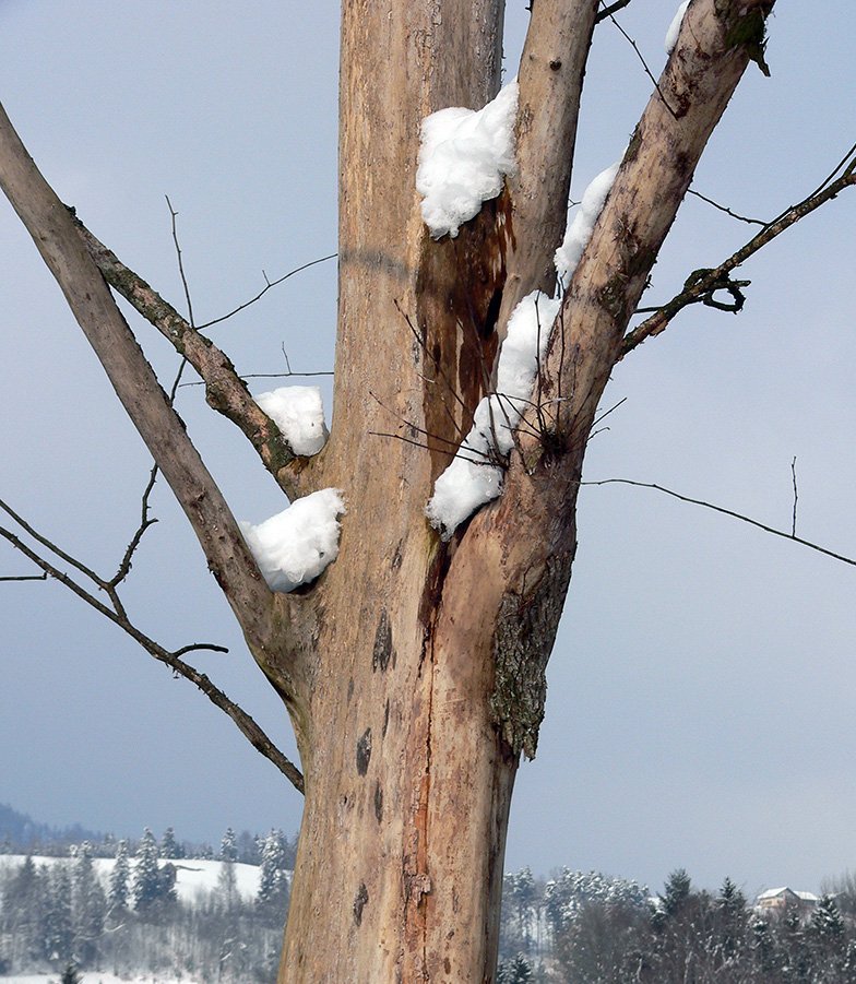 - Tote Zweigspitzen krümmen sich abwärts (vor allem im Winter auffällig)