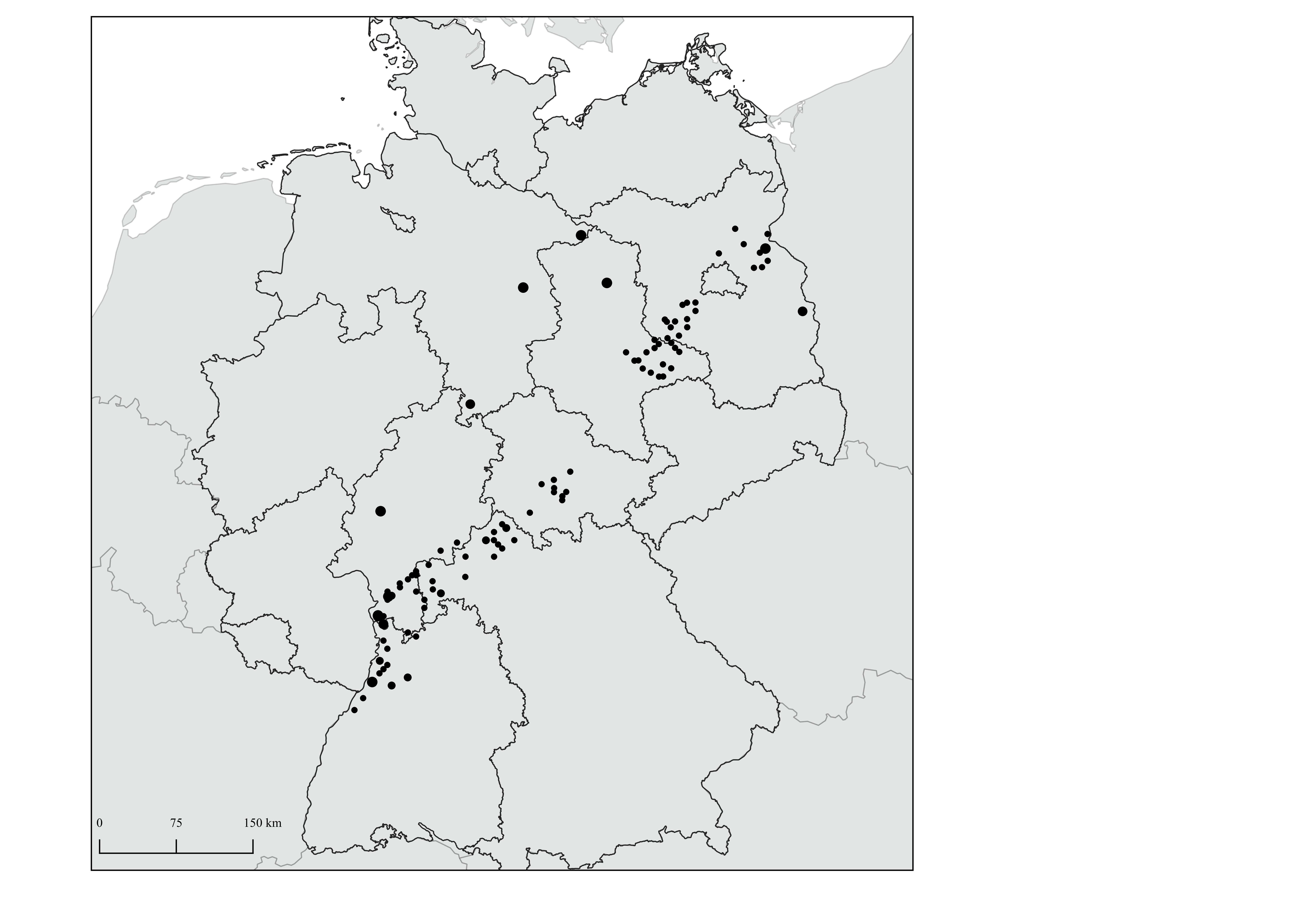 Im Rahmen des Projektes wurde das Diplodia-Triebsterben entlang eines Transekts von Nordost- nach Südwestdeutschland erforscht. Insgesamt wurden 190 Waldkiefern auf 105 Standorten untersucht (Abb. 3). Dazu wurden Probeäste mit Pfeil und Bogen oder von Baumkletterern geworben und zusätzlich einige Kiefern gefällt. Anschließend wurden die vorkommenden Pilzarten aus gesunden und erkrankten Probezweigen isoliert, im Labor in Reinkultur gebracht und ökologisch sowie hinsichtlich ihrer forstlichen Relevanz bewertet. Auf den Untersuchungsflächen wurde zudem das Vorkommen der Mistel, des Wurzelschwamms und sonstiger Einflussfaktoren (z.B. Nadelfraß durch Insekten) erhoben.