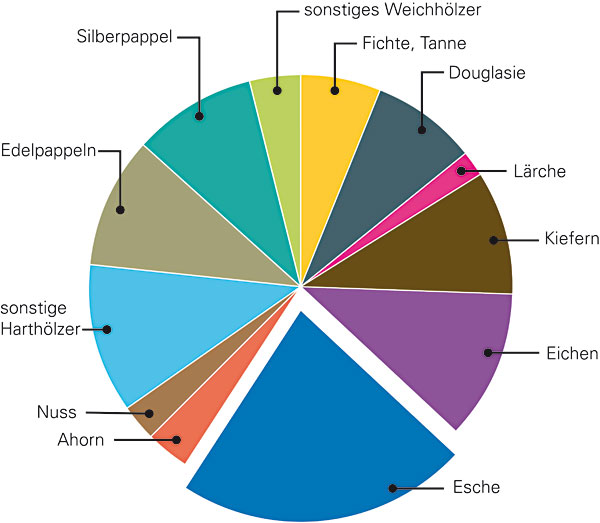 Das Abräumen von Eschen fördert auch einen Preisverfall, der angesichts guter Mengennachfrage und guter Holzqualität der erkrankten Eschen vermeidbar ist. Die letzten 15 Jahre haben Mode bedingt ohnehin bereits einen fast fünfzigprozentigen Preisrückgang gebracht.