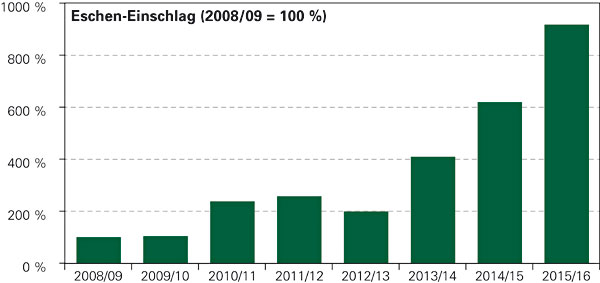 Abbildung 4: Entwicklung der Eschen-Schadholznutzungen