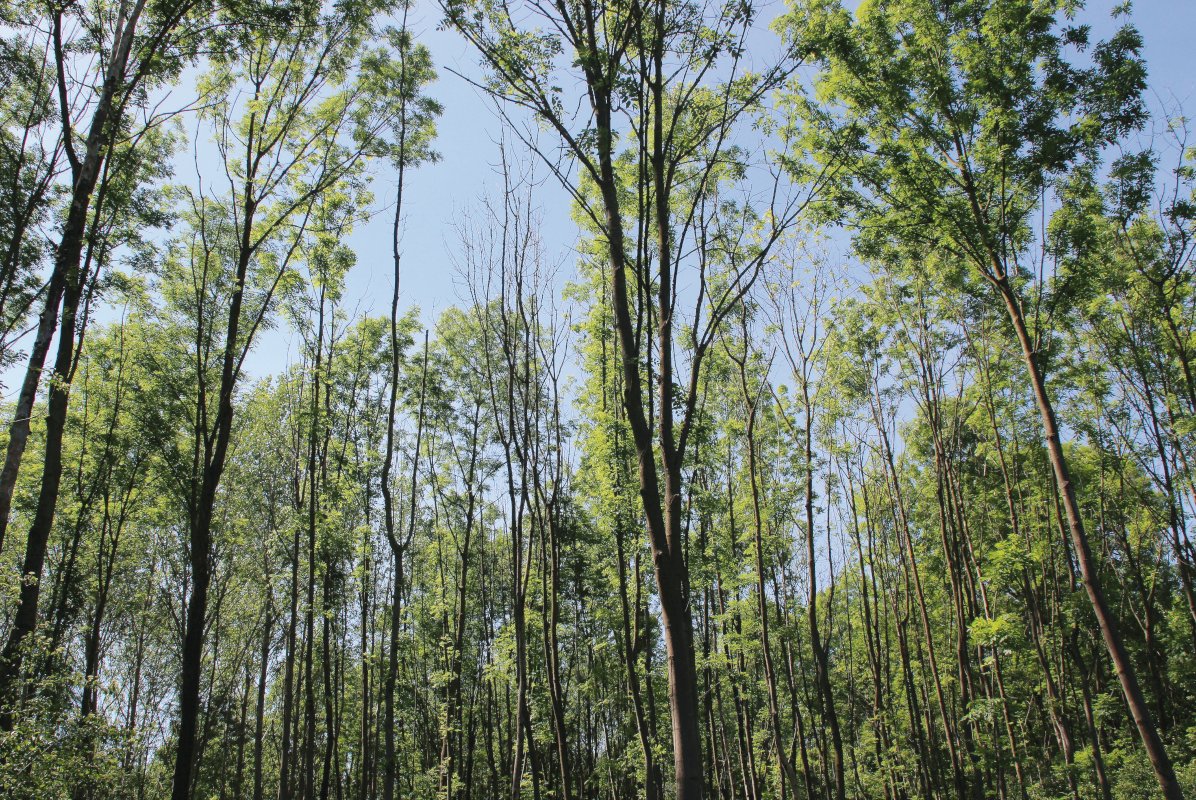 - Ersatz durch Weichholzarten oder standortsbezogen Weich- und Hartholzarten: Mit dem Ersatz ausfallender Eschen durch raschwüchsige Baumarten, vor allem Edelpappeln, können zukünftige Ertragslücken zumindest reduziert werden. Dem sind aber standörtliche Grenzen gesetzt. Edelpappeln sind lediglich bis in die frische harte Au gut angepasst. Mit sinkender Überflutungsgefahr stehen auf höheren Standorten jedoch zunehmend mehr Hartholzarten zur Verfügung. Eine Mischung von Weich- und Hartholzarten senkt zugleich ökologische Risiken und Marktabhängigkeiten. Wir setzen auf Schwarznuss, Spitz- und Bergahorn, Platane, Wildobst oder Gleditschie, trotz bedenklichen Gesundheitszustands auf Stieleiche und im Falle alternativloser Naturverjüngungen auch auf Robinie und Götterbaum. Von den Weichholzarten verwenden wir Edelpappeln und Winterlinde. Unter den Nadelbäumen könnte Thuje versucht werden. Die von Naturschutzseite empfohlene Silberpappel ist dagegen holztechnologisch wertlos. Sie neigt zu Ringschäle, rötlicher Färbung und strengem Geruch; das schließt die Verwendung in der Obstkistenerzeugung, einem klassischen Markt für Pappelholz, ebenso aus wie jede andere höherwertige Verwendung.