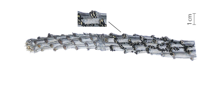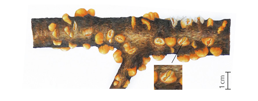 Auf Arvennadeln und Trieben wurde am häufigsten das Cenangium-Triebschwinden (C. ferruginosum) und das Scleroderris-Triebsterben (Gremmeniella abie tina) festgestellt (Abb. 3, Arve). Ebenfalls häufig waren der Weisse Schneeschimmel (Phacidium infestans) und die Physiologischen Nadelschütte (natürliche Nadelalterung, keine Pilzkrankheit). Letzteres ist nicht erstaunlich, da jede Nadel nach einigen Jahren abstirbt. So ist die Physiologische Nadelschütte im Prinzip auf jedem Baum präsent. Der Anteil von Schäden durch die Rotbandkrankheit (Dothistroma spp.) stammt durchwegs aus dem Siedlungsgebiet. Da Arven relativ dünne Nadeln haben, sind Symptome der Rotbandkrankheit teilweise weniger gut sichtbar. Die Entdeckung in Gärten ist damit wahrscheinlicher als im Wald. Die Braunfleckenkrankheit (Lecanosticta acicola) wurde bisher noch nicht an der Arve gefunden.