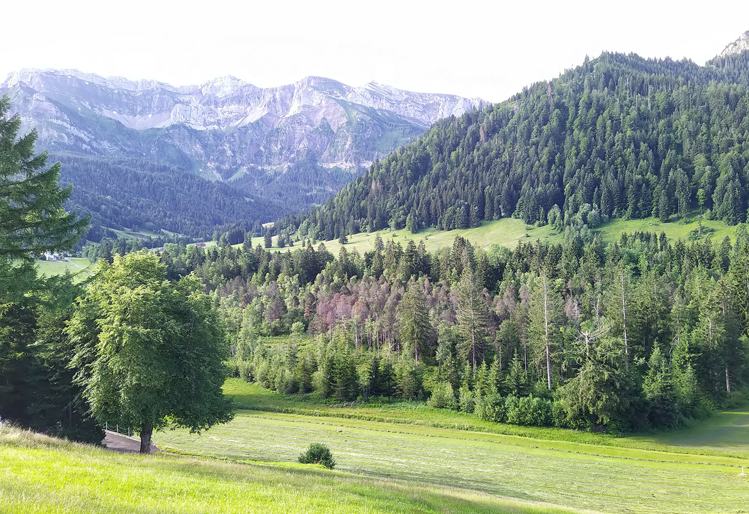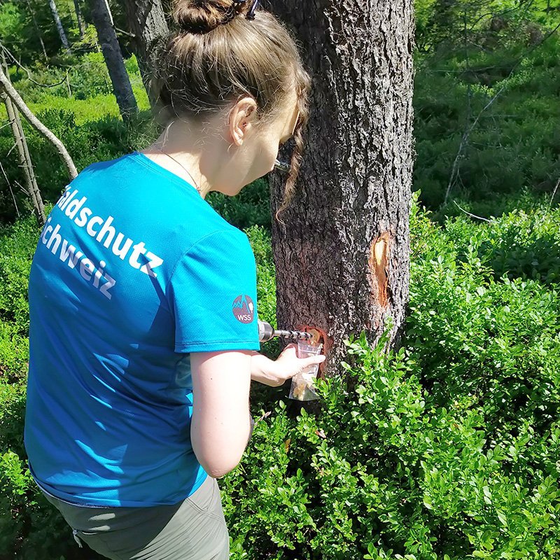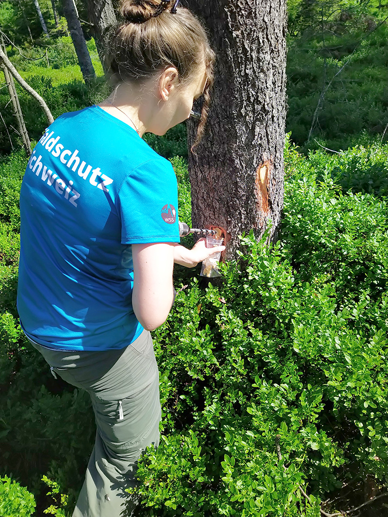 Das Holz von Föhren ist relativ häufig verfärbt. Um mehr über die verursachenden Pilze zu erfahren, hat Waldschutz Schweiz 2021 im Rahmen der Gebietsüberwachung zum Kiefernholznematoden Bursaphelenchus xylophilus 78 absterbende oder frisch abgestorbene Föhren aus der ganzen Schweiz untersucht (Abb. 2–4). Dabei sind zahlreiche Holzverfärbungen beobachtet worden.