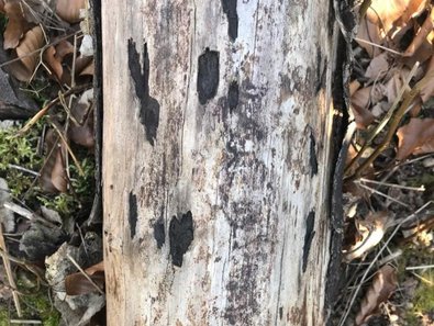 - In Beständen mit Sporenlagern (Abbildung 5b) sollte bei Fällungsmaßnahmen eine Atemmaske getragen werden, da die Gesundheitsgefahr durch intensives Einatmen der Sporen nicht abschließend beurteilt ist. Wir raten zum Tragen einer FFP3-Maske, da die Sporen eine geringe Größe von etwa 5 μm aufweisen.