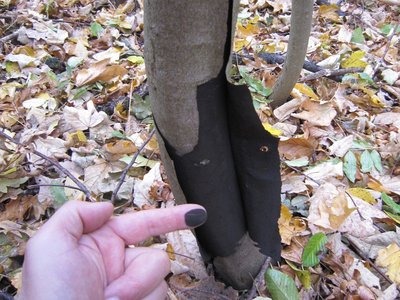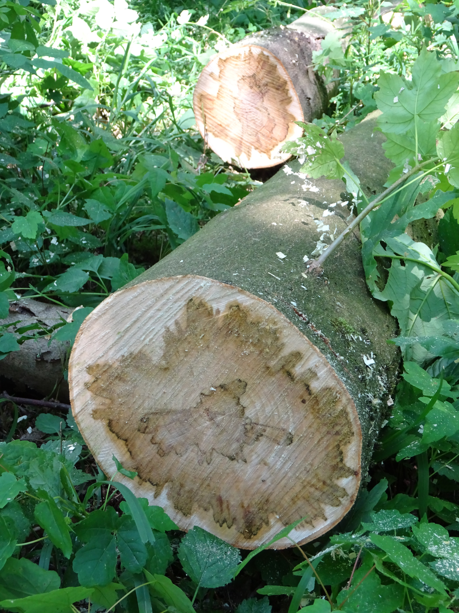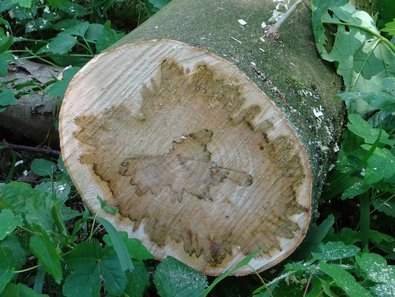 - Generell sollten erkrankte als auch gesunde Ahorne aus befallenen Beständen nicht weiterverarbeitet oder als Brennholz genutzt werden. Die Sporen des Pilzes können sich auf gelagertem Holz äußerlich gesund scheinender Bäume entwickeln (Abbildung 5a).