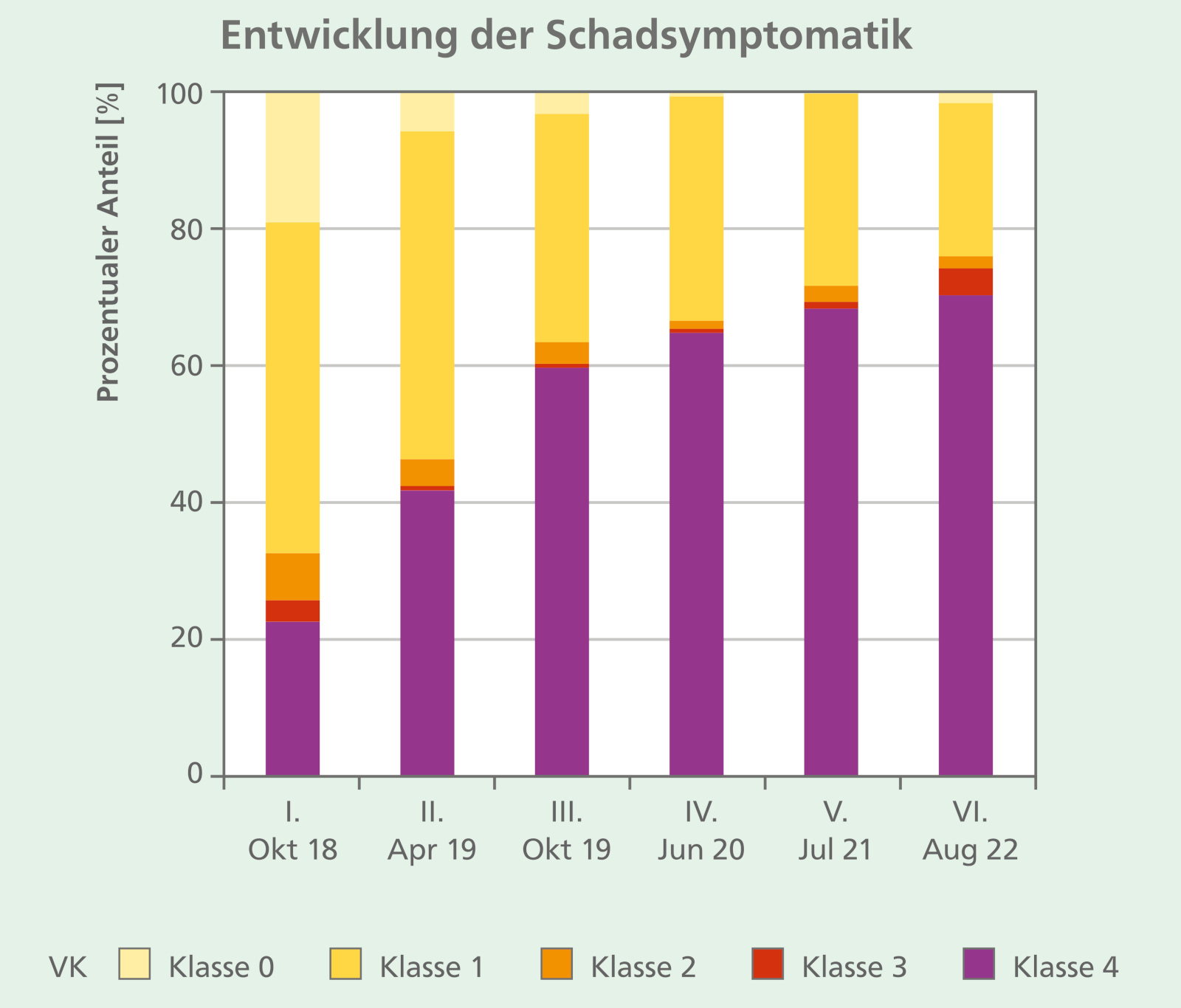 Bei Beginn der Aufnahmen im Oktober 2018 waren bereits über 20 % der Bergahorne auf den Versuchsflächen durch die Rußrindenkrankheit abgestorben. Ein halbes Jahr später im Frühjahr 2019 wiesen mehr als 40 % der Bäume schwarze Sporenlager auf. Zwölf Monate nach dem Start der Aufnahmen im Oktober 2019 waren bereits 60 % der Bergahorne abgängig (Abbildung 4).