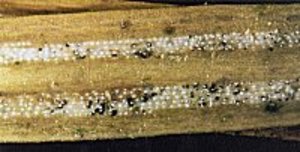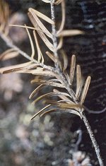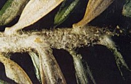 Auch in Folge von Frosteinwirkung geschwächte Nadeln werden oft von Cytospora-Arten besiedelt (Abbildung rechts: Fruchtkörper von Cytospora auf abgestorbenen Tannennadeln). Gelegentlich wächst Cytospora von Hagelschlagwunden ausgehend in Nadeln ein.