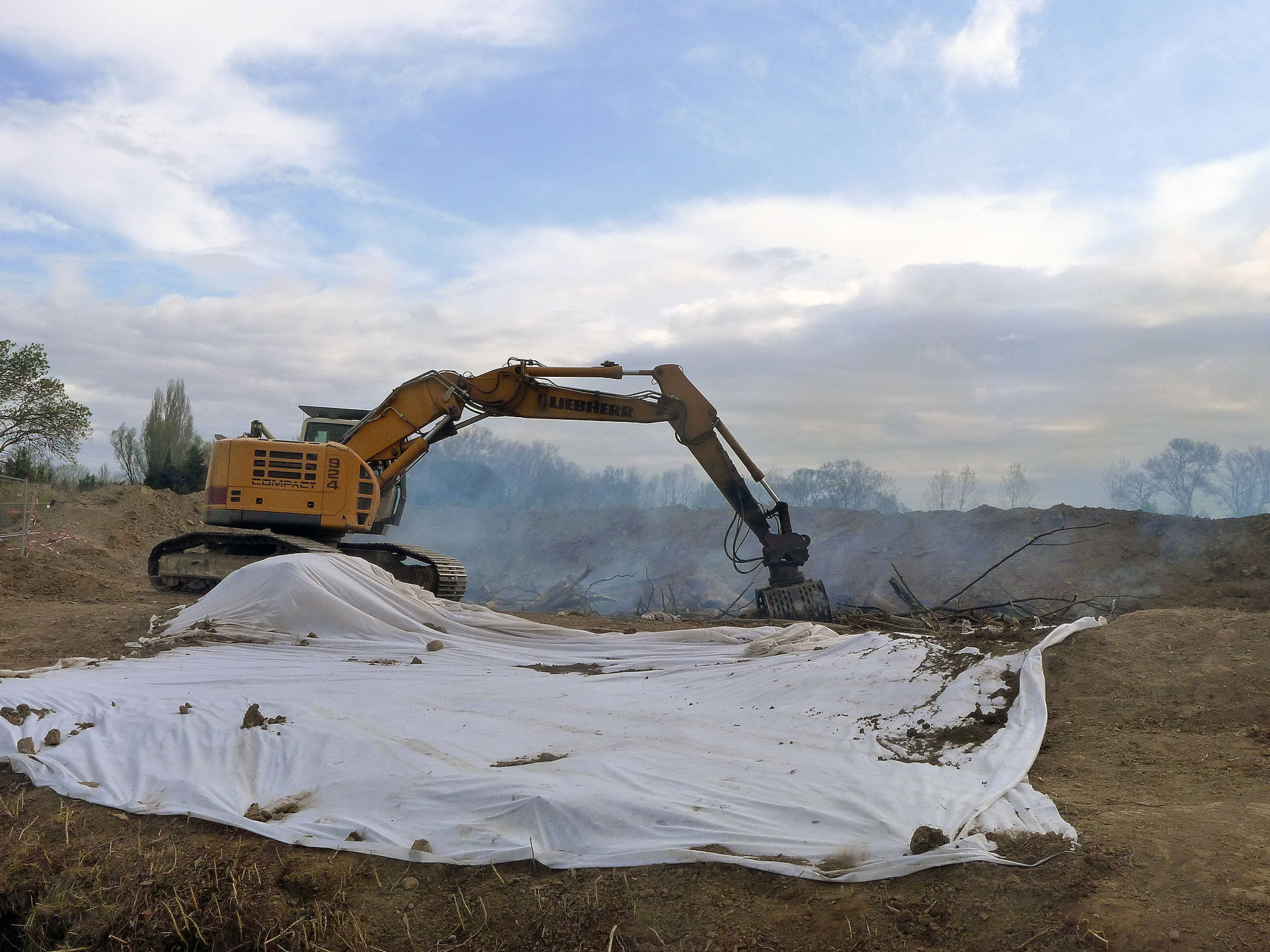 - Rasche und konsequente Entfernung von Platanen mit Symptomen. Um einer weiteren Verbreitung des Erregers vorzubeugen, sind nach dem Einschlag sämtliche Pflanzenteile sowie das Sägemehl sofort vor Ort zu verbrennen (Abb. 2). Keinesfalls dürfen Stammholz, Brennholz, Hackschnitzel oder kontaminierter Boden anderweitig verbracht werden.