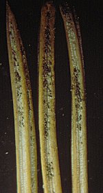 Das Mycel dringt über die Spaltöffnungen der Nadel in das Mesophyll ein. Die winzigen Fruchtkörper entstehen aus der Atemhöhle unter dem Stoma und heben Reste des stomatären Wachspropfens über die Nadeloberfläche empor. Bei starkem Befalll können bis zu hundert Prozent der Spaltöffnungen von Fruchtkörpern zerstört sein. Die Nadelfarbe wird stumpf grün und später gelbbraun.