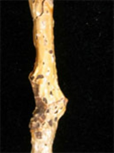 Wenn mehrere benachbarte Läsionen auf einem dickeren Ast zusammenwachsen, kann es auch zur Ringelung und damit zum Absterben von Starkästen kommen. Befallene Jungpflanzen gehen oft schnell zugrunde.
